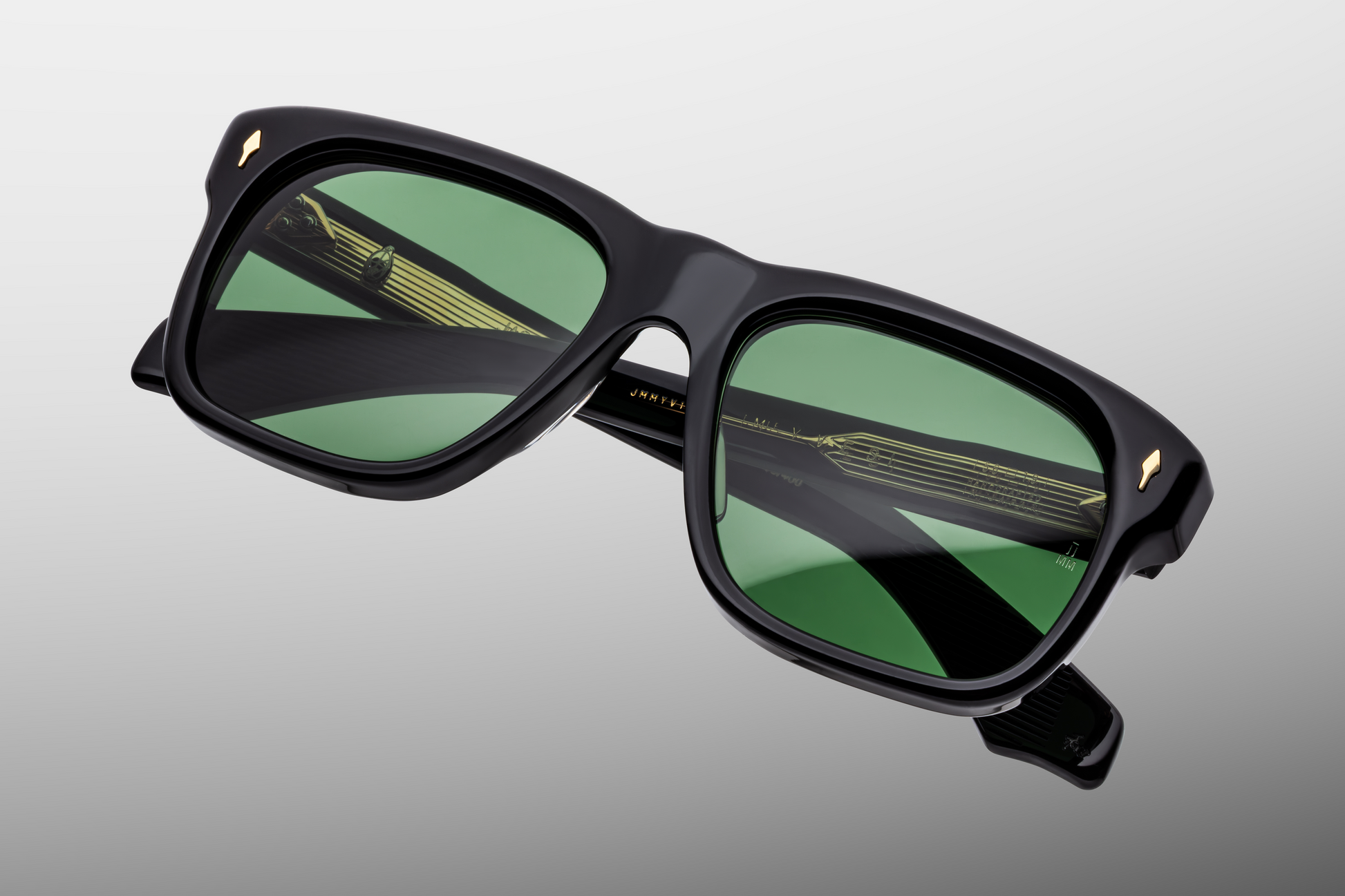 Black 10mm cured cellulose acetate frame custom double laminated acetate temples and green lenses