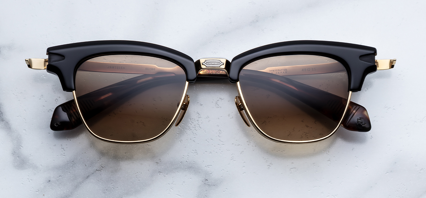 Stare down even the most obstinate of existential philosophies in this reimagined expression of a style originally released in 2019, classic ’50s-inspired spectacles featuring a sculptural acetate brow complemented by 4mm titanium eye rims with refined hairline details, a new bridge with dual-tone embellishments, and titanium temples with unique arrowhead motif and sculptural acetate temple tips.