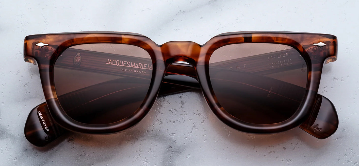 Classic Wellington-shaped glasses with unique bevel cuts and paddle temples, inspired by late French Classicism. These spectacles feature a sterling silver signature arrowhead front pin, hidden hairline engraved wirecore, and a custom 7-barrel hinge. The dark Tuscan CR39 lenses have a backside anti-reflective treatment. The frame is made from 10mm cured cellulose acetate with double laminated acetate temples and precious metal hardware.