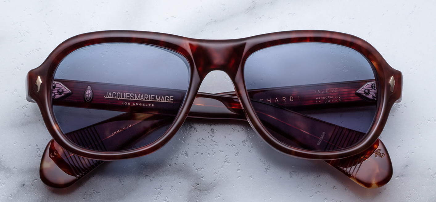 Mid sized optical glasses with a modern aviator shape, hand crafted with our signature double arrowhead front pins and comfortable 'spatula' temple.